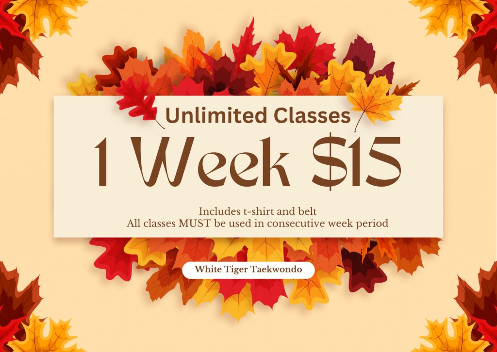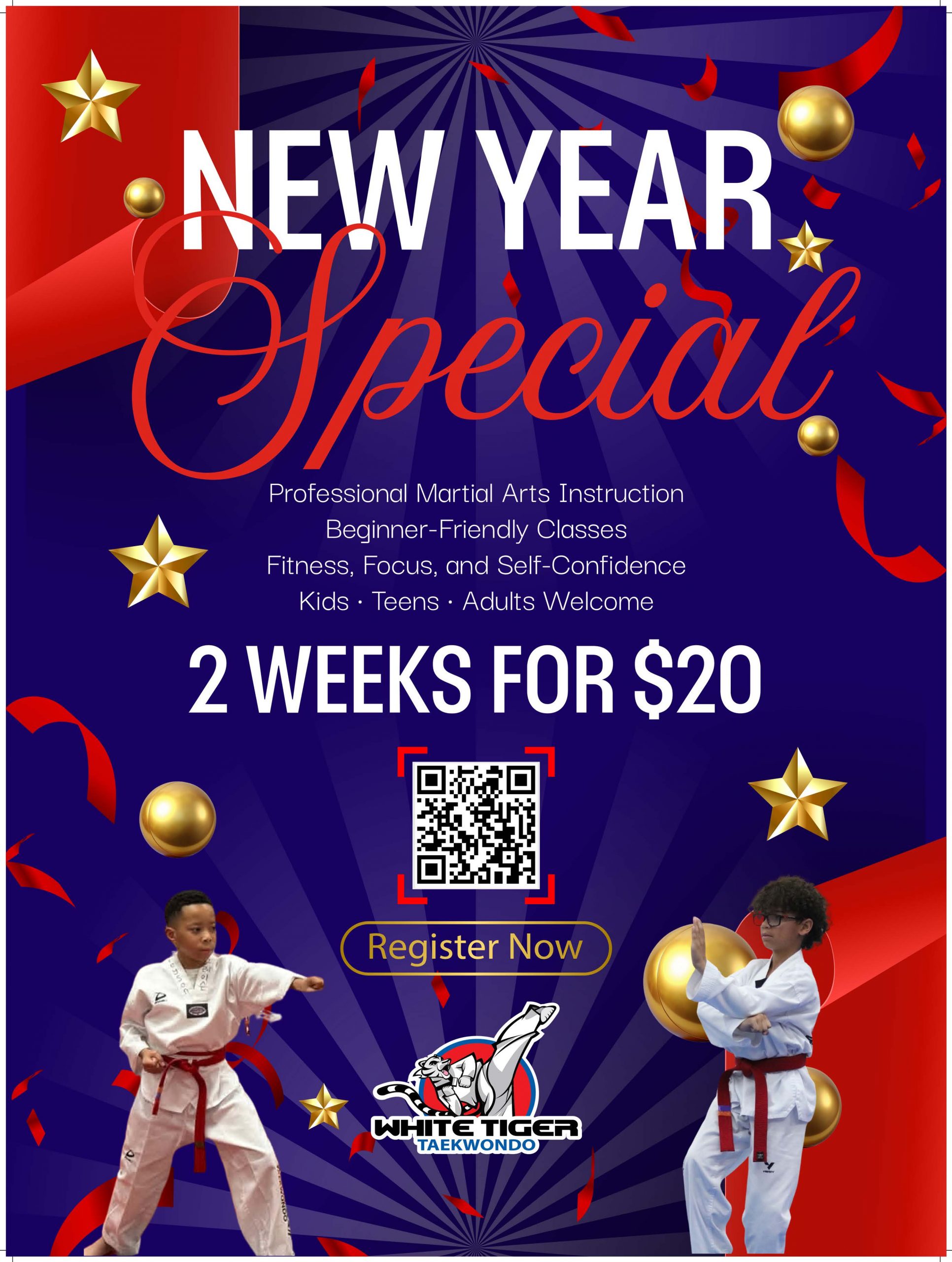 Get started now with one of our WEB SPECIALS and find out how you can be healthier, happier, and more confident with Elite White Tiger Taekwondo training!